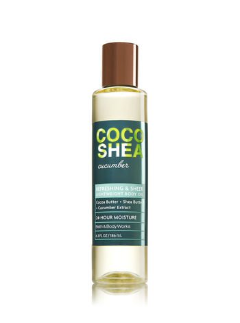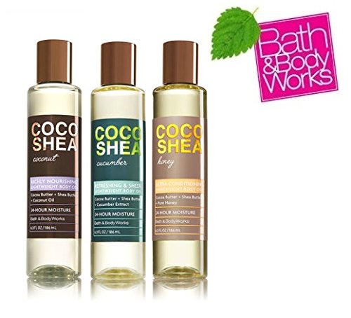 -. Binding : Misc. -. Brand : Bath & Body Works -. Color : Multicolored -. EAN : 0688969058555 -. Feature : Bath & body Works Cocoshea Lightweight Body Oil Set - Cucumber, Honey and Coconut. Includes / 6.3 fl oz Cocoshea Lightweight Body Oil Cucumber / 6.3 fl oz Cocoshea Lightweight Body Oil Honey / 6.3 fl oz Cocoshea Lightweight Body Oil Coconut / Cocoa butter + shea butter moisturizes and replenishes Cucumber Extract refreshes and revitalizes -. IsAdultProduct : 0 -. Label : Bath and Body Works -. Manufacturer : Bath and Body Works -. MPN : 688969058555 -. PartNumber : 688969058555 -. ProductGroup : Beauty -. ProductTypeName : BEAUTY -. Publisher : Bath and Body Works -. Size : 6.3 fl oz -. Studio : Bath and Body Works -. Title : Bath & Body Works COCOSHEA Set of 3 Lightweight Body Oil ~ CUCUMBER ~ HONEY AND COCONUT 6.3 oz each -. UPC : 688969058555