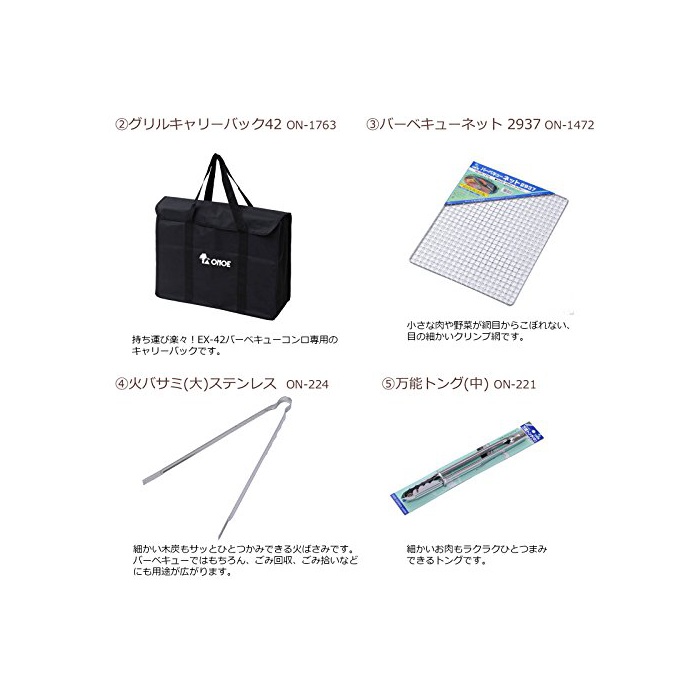 원본상품명: 尾上製作所(ONOE) 4-5人用バ?ベキュ?スタ?タ?セット ?納バッグ替え網トングアルミシ?ト等付? EX-42-AVBSET