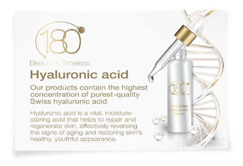 - Feature : CONTAINS THE HIGHEST CONCENTRATION OF THE ABSOLUTE BEST QUALITY SWISS HYALURONIC ACID AVAILABLE ON THE MARKET- enriched with natural ingredients and vitamin C for maximum results. Also contains powerful antioxidants that protect skin from free radicals / REVERSE THE SIGNS OF AGING WITH THE NEWEST 180 COSMETICS PURE SWISS HYALURONIC SERUM + VITAMIN C THAT HAS TAKEN THE WORLD BY STORM! Watch this truly revolutionary serum reverse the signs of aging right before your eyes, as it restores skin's elasticity and leaves it looking and feeling smooth, supple, and rejuvenated. / FOR AGES 40 AND ABOVE - we also recommend using the 180 Cosmetics Pure Swiss Hyaluronic Serum or cream + Peptides for maximum results. / CHECK OUT OUR NEW PRODUCTS: Hyaluronic Serum + Oxygen, Hyaluronic Serum + Peptides, and Hyaluronic Cream + Peptides for a Smoother, Younger Looking Neckline and Decolletage. / WHY YOU NEED TO CHOOSE 180 COSMETICS? Because you deserve to get the best possible results!!