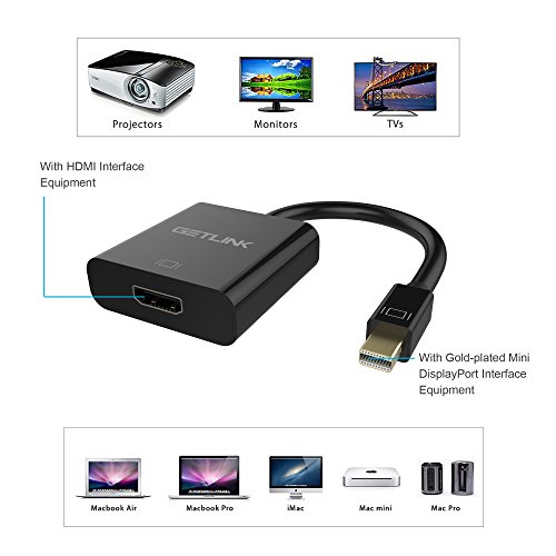 Getlink Mini DisplayPort (Thunderbolt) to HDMI Adapter - Black