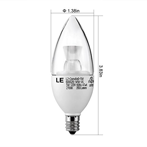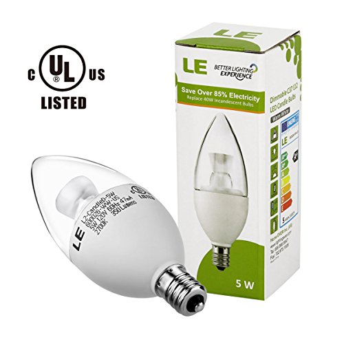 LE Dimmable Candelabra LED Bulbs, 40W Incandescent Bulbs Equivalent, 5W E12 Base LED Torpedo, Chandelier Bulbs, 350lm, 120° Beam Angle, Warm White, 2700K, LED Candle Bulbs, 5 Pack