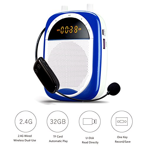 WinBridge S610 2.4G Wireless Digital Voice Amplifier Portable MP3 Player/Recorder for Teachers, Coaches, Tour Guides, Presentations, Costumes, Etc Dark Blue