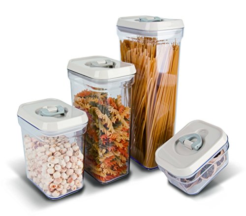 Elemental Kitchen Air-Tight Food Storage Container Set - 4 Piece Set - Durable Plastic - BPA Free - Clear Plastic with Light Grey Lids