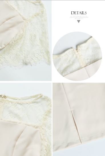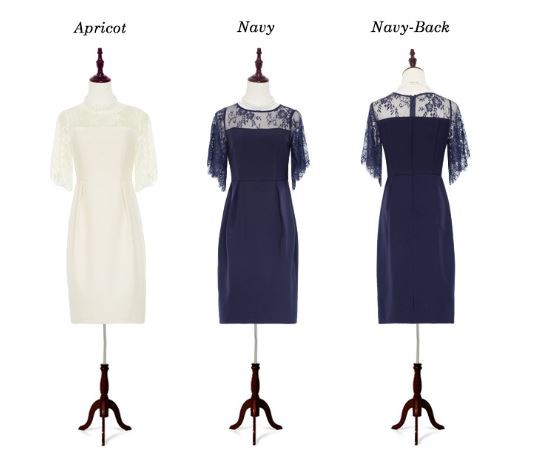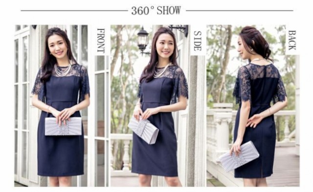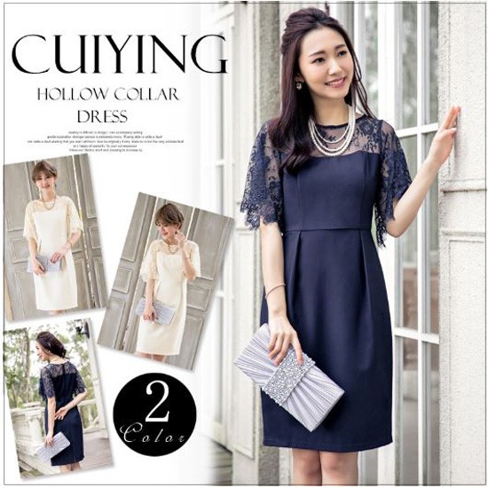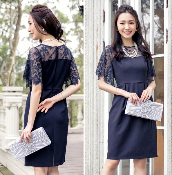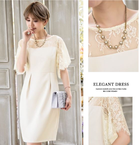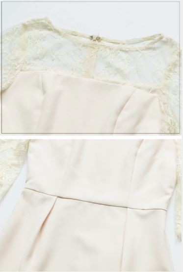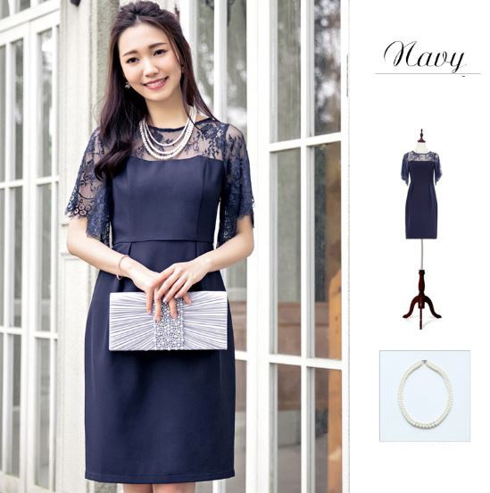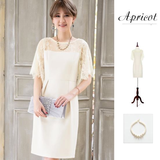 デコルテから続くレース袖が大人エレガントなドレスです。