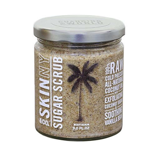 -. Binding : Health and Beauty -. Brand : Skinny & Co. -. EAN : 0855766006090 -. Feature : 100% raw cold pressed coconut oil with exfoliating coconut sugar & soothing vanilla bean / 9 oz jar / Ingredients: Skinny & Co. coconut oil, coconut sugar and vanilla bean / Perfect for shaving or exfoliating because it never irritates / Skinny & Co coconut oil is the only 100% pure and alkaline coconut oil in the world made from wild-harvested coconuts without using heat, chemicals or toxic solvents -. IsAdultProduct : 0 -. Label : Skinny & Co. -. Manufacturer : Skinny & Co. -. PackageQuantity : 1 -. ProductGroup : Health and Beauty -. ProductTypeName : HEALTH_PERSONAL_CARE -. Publisher : Skinny & Co. -. Studio : Skinny & Co. -. Title : Skinny & Co. Coconut Oil Exfoliating Sugar Body Scrub 9 Oz Jar -. UPC : 855766006090