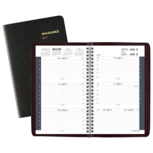 -. Binding : Office Product -. Brand : At-A-Glance -. EAN : 0038576244474 -. Feature : Weekly appointment book helps you stay on top of meetings and to-do's every day of the week. Clear two page per week format provides space for detailed notetaking. / 12 month date range covers a full calendar year from January to December. Hourly appointment times from 8:00 a.m. - 5:00 p.m. Monday - Friday organize your workday schedule. Julian dated. / Half size block for Saturday and Sunday are untimed to allow for more leisurely weekend planning. Past, current and two months future reference calendars included for added planning perspective. -. Label : ACCO Brands -. Manufacturer : ACCO Brands -. Model : 7010005-17 -. MPN : 7010005-17 -. NumberOfItems : 1 -. PackageQuantity : 1 -. PartNumber : 7010005-17 -. ProductGroup : Office Product -. ProductTypeName : OFFICE_PRODUCTS -. Publisher : ACCO Brands -. Studio : ACCO Brands -. Title : AT-A-GLANCE Weekly Appointment Book / Planner 2017, Tabbed Address Section, 4-7/8 x 8" (70-100-05) -. UPC : 780746292159