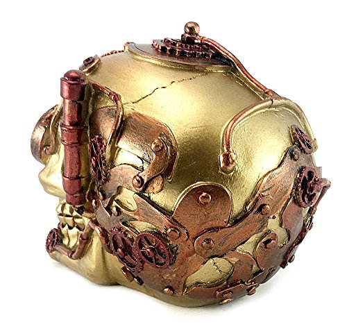 #1 Skull on Web, Steampunk Protruding Gearwork Robotic Human Skull Statue Figurine