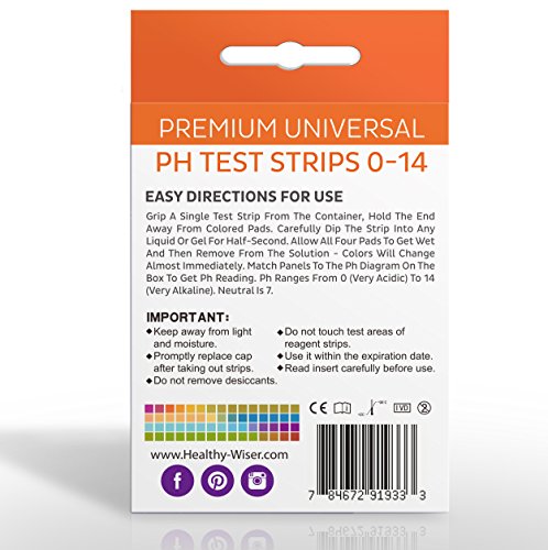 Are you concerned about pH levels in your food, water supply, and garden? Whether it is for health concerns, growing vegetables or ensuring your pool isn't a hotbed of algae pH testing is an easy way of protecting yourself. Universal pH testing strips are an easy to use and are a reliable method of testing ? Urine Saliva ? Aquariums, Pools, hot tubs, spas ? Garden soil ? Coffee, tea, drinking water ? Skin care and hair care products ? Any liquid at all Ready, set, test By knowing the pH level of many common products you can protect your health. Skin care and hair care products for example can lead to dry, itchy skin, cause dandruff, infections, and rashes if they have improper pH levels. Homemade health elixirs like Kombucha Tea, which is a fermented herbal tonic, can contain harmful microorganisms if the pH is too low. Your pool and aquarium can be a breeding ground for algae if the pH is off. And if you love the taste of homegrown vegetables then you know the pH level in your garden is paramount in producing healthy, tasty fruits and vegetables. HealthyWiser Universal pH Test Strips 0-14 are an easy, simple, and accurate way to test the pH level of virtually any liquid. Our test strips will help you to test: ? Your food and drinking water to ensure a healthy alkaline diet ? Your urine and saliva to monitor body health ? Your soil for healthy gardens and lawns ? Your pool, hot tub, spa, ponds and aquariums HealthyWiser is concerned about your health. That's why our test strips are carefully tested, labeled, and accurately matched to our color code chart. If for any reason you're not satisfied with our strips, simply return them within 90 days for a full refund. So get your life in balance. Scroll up to click on the Add to Cart button to have your HealthyWiser Universal pH Test Strips shipped today 0 |