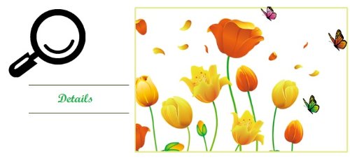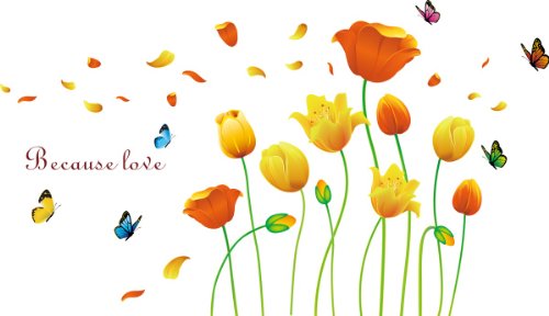 -. Binding : Kitchen -. Brand : Kappier -. Color : Red -. EAN : 0030915413770 -. Feature : Includes large orange/yellow tulips, petals and butterflies / Applies to any smooth surface / Removable and reusable with no sticky residue / Dimension of product sheet: 23Wx35L -. MPN : 4126697 -. PackageQuantity : 1 -. PartNumber : 4126697 -. ProductGroup : Home -. ProductTypeName : HOME -. Size : 23Wx35L -. Title : Kappier® Beautiful Large Long Stem Orange and Yellow Tulips with Elegance and Grace Peel & Stick Wall Decals -. UPC : 030915413770