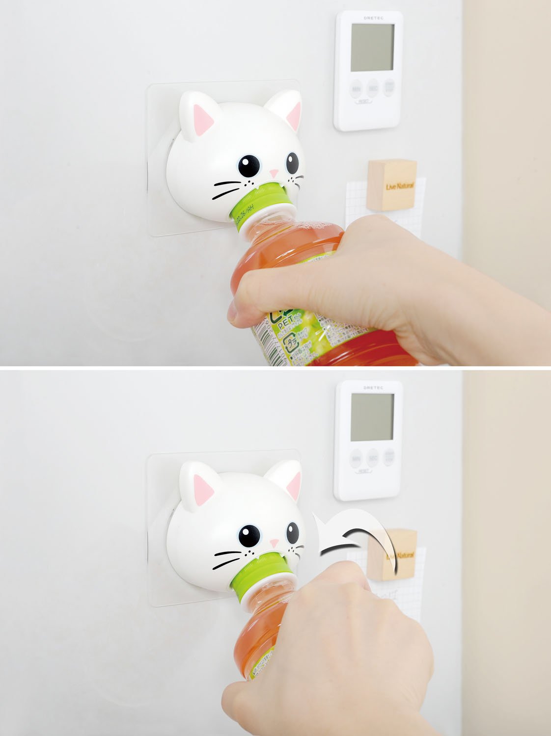 A cute cat design opener that can be opened with one hand of a plastic bottle