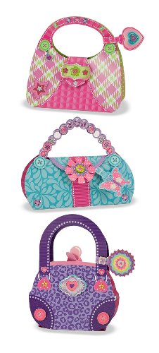 Simply fold and stick to make three super-stylish purses—then layer on sparkling stickers and cool pre-cut pieces for designs that really pop! This all-inclusive kit makes it easy to design and make a trio of fabulous handbags with no scissors, tape, or glue required. A variety of add-on accents makes each designer’s work unique, with a custom combination of sturdy cardstock materials, shimmering gem stickers, and pre-cut shapes that stick on with puffy foam tabs. With layerable pieces, every design element can have an exciting dimensional look! Includes three easy-to-make, easy-to-decorate dress-up purses and complete materials for decorating.Feature