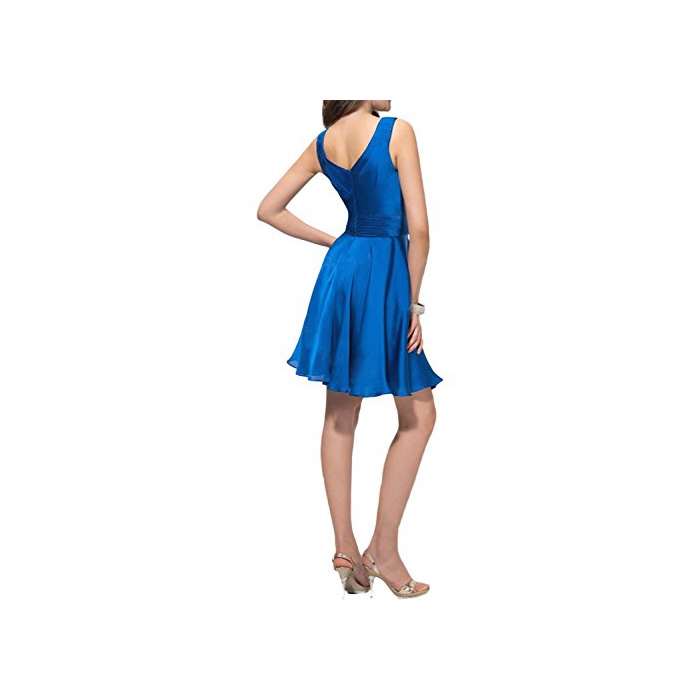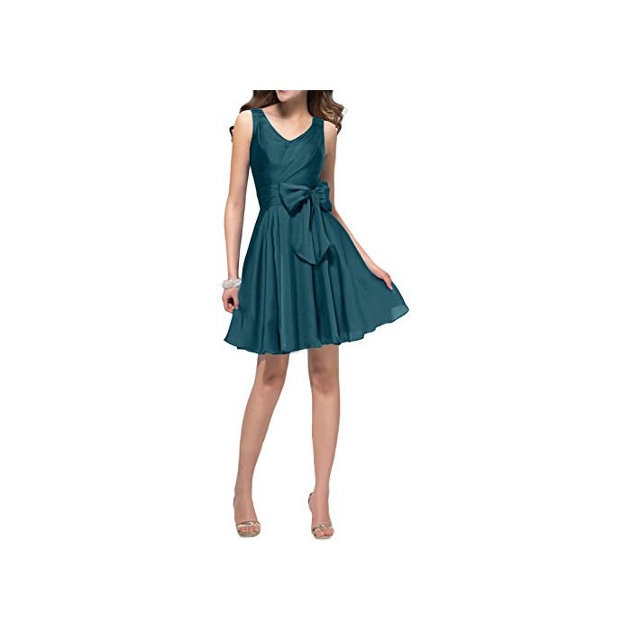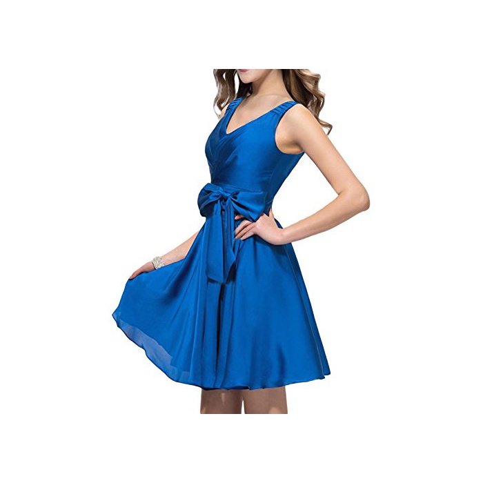 (삼바 리) Sunvary A라인 스커트 V넥 백 레스 수없음 벨트 나비매듭 브라이즈 메이드 드레스 칵테일 드레스