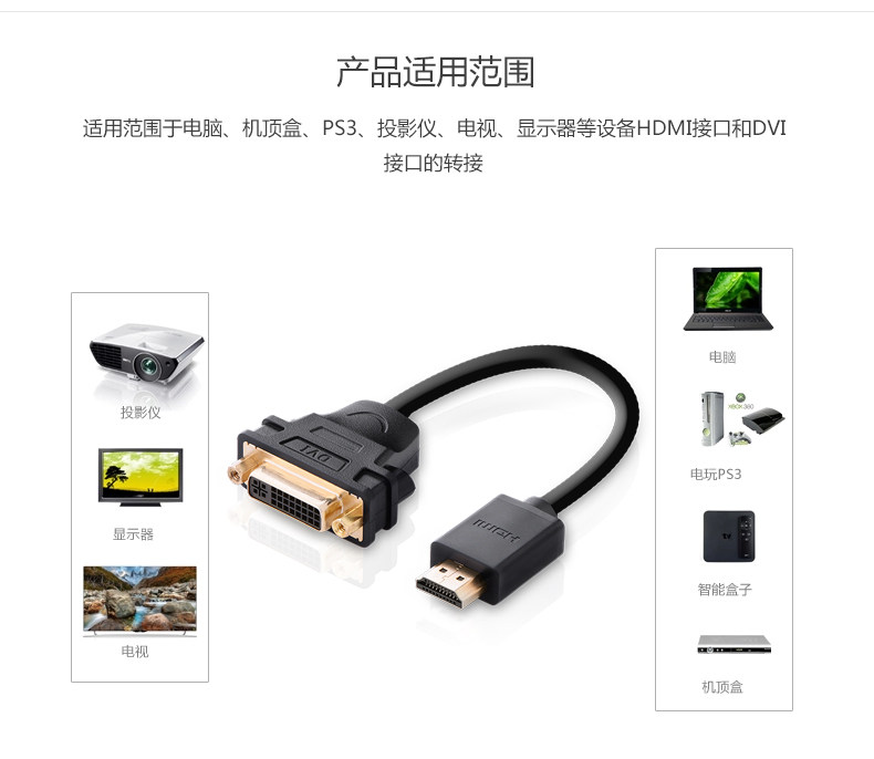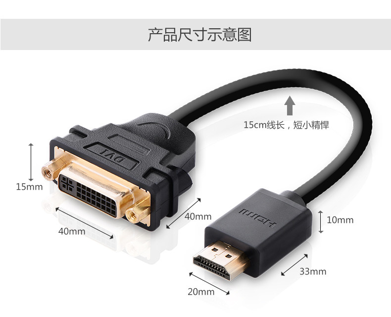 绿联 HDMI转DVI24+5公对母转接线镀金高清DVI转HDMI双向互转短线