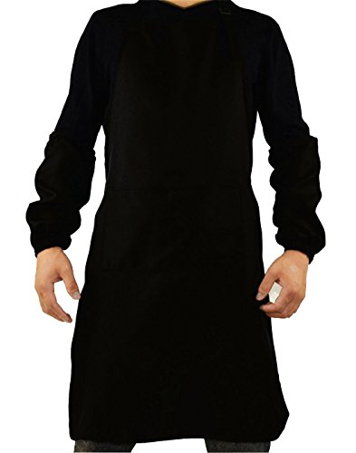 HOPESHINE Water Resistant Apros and Sleeves for Men and Women Kitchen Dish Washing Stain Resistant Chef Aprons with Pockets (Black)