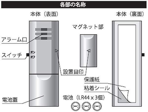 | 窓やドアが開くと、大音量アラームでお知らせ。防犯アラーム。 |