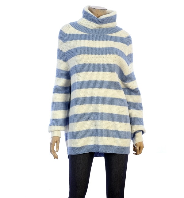 mesense, 스트라이프 패턴으로 활발한 분위기를 연출하는 폴라넥 티셔츠입니다