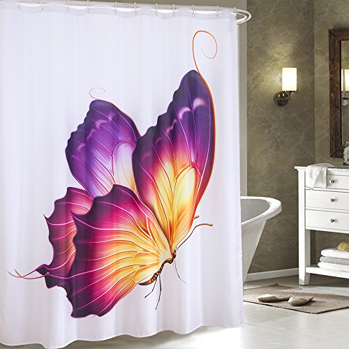 Global homefashion Shower Curtain, Wide 71-Inch by Long 71-Inch, Polyester, Waterproof Fabric, the Bath Curtain with a big Beautiful Butterfly