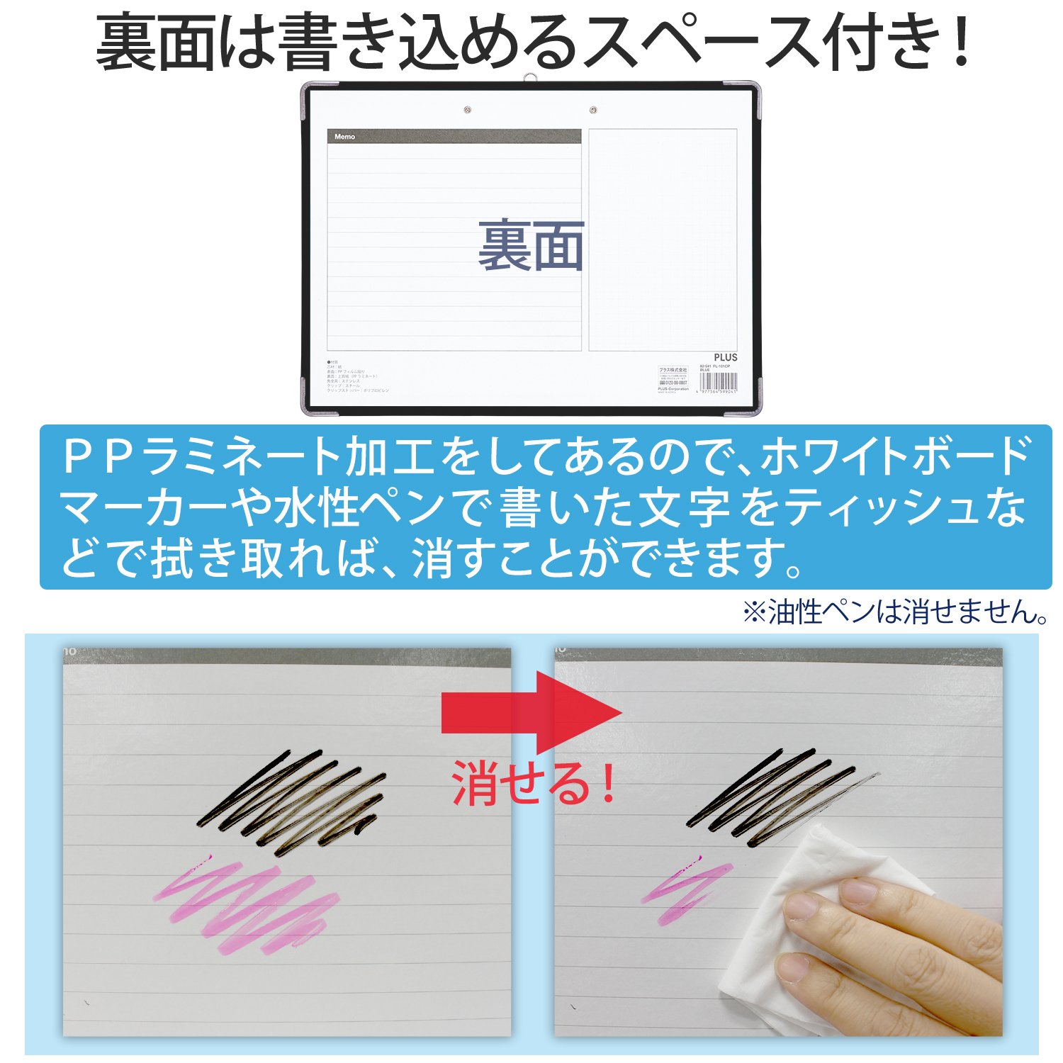 · On the back side, you can erase characters written with a general water pen or whiteboard marker if you wipe them off with tissue or the like.