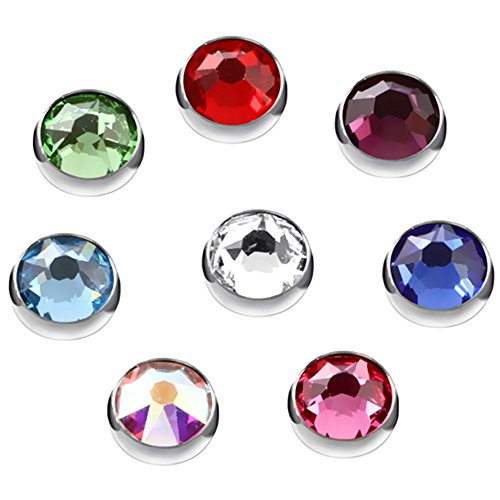 -. Feature : Color:Clear,Red,Purple,Rose,Aqua,Blue,Peridot,Crystal AB / Packing:mixed 8 colors,sold as 8pcs/lot / Size:Matching 14G 1.6mm / Design:Titanium Dermal Anchor Piercings / Fulfillment By Merchant will ship by EUB, spend 7-15 working days in normal shipping.