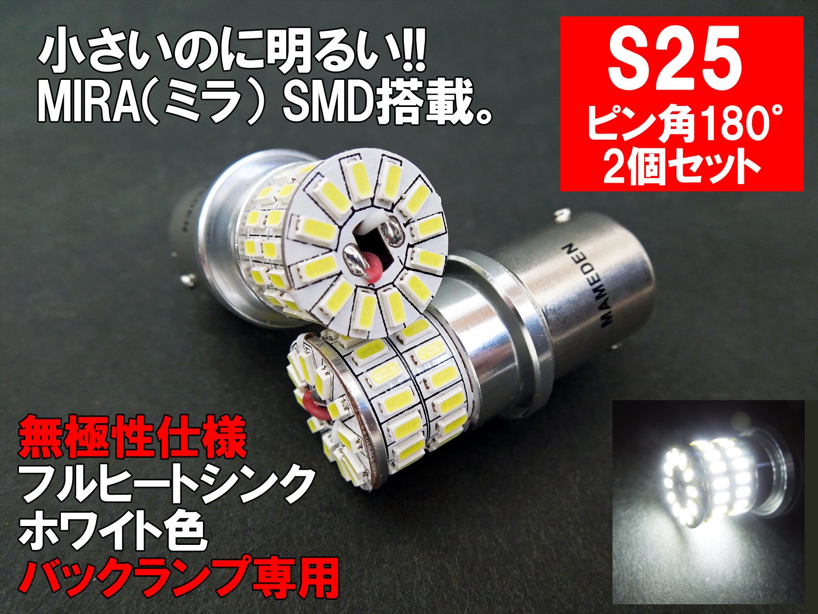 Beans power (MAMEDEN) S25 LED [single pin angle 180 ° (BA15s)] white [3014SMD] back lamp (cap ball / non-polar) 2 per set