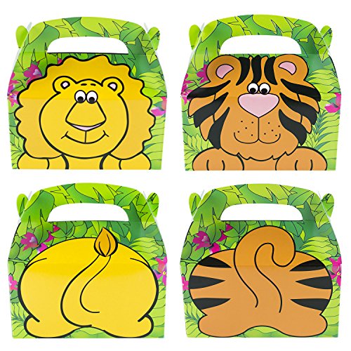 - Colorful zoo animal themed favor boxes featuring cartoon mammals on each box. Create a zoo themed paradise for children for a wild animal zoo decor suited for settings of a rain forest safari, jungle, moana party, circus theme and even baby showers with these favor boxes. Fill them with cookies, candy, juice boxes, snacks and party favor toys.