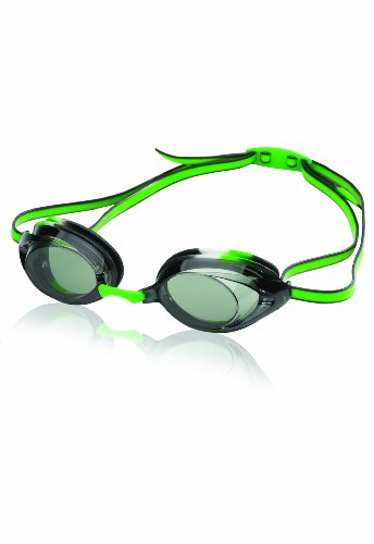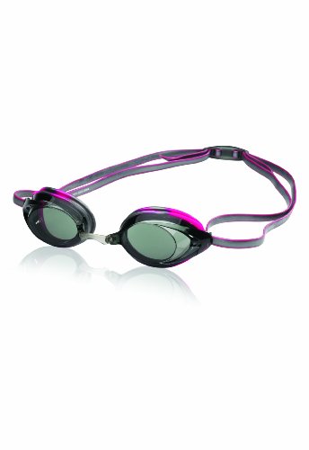 - Feature : Speedo's top performance junior goggle designed to fit smaller, narrower faces with updated styling and 25% more peripheral vision / Ultra low profile design for the high performance, competitive swimmer aged 12 and up. Ideal for races and training. / Dual color, silicone, double headstrap and ergonomic adjustable back clip / Three interchangeable nose pieces for custom fit / UV protection and Anti-Fog coating in a polycarbonate lens for improved safety and visibility
