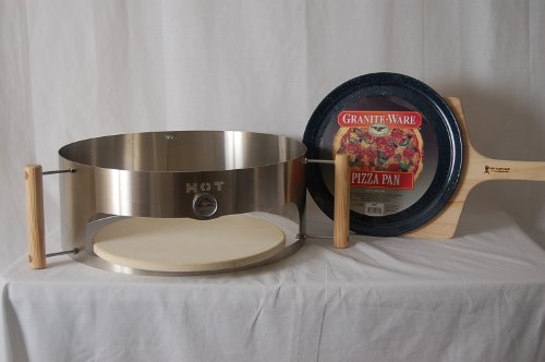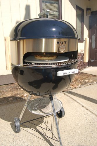 - Feature : Transforms 18.5" or 22.5" kettle grills into a pizza oven / Heat remains stable because lid does not need to be removed to access food / Made of 20 gauge, 304 grade stainless steel. Made in USA / Kit includes stainless sleeve, handles, thermometer, aluminum pan, 15" cordierite stone and wooden pizza peel / Works with charcoal or hardwood