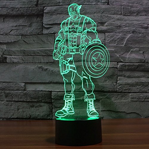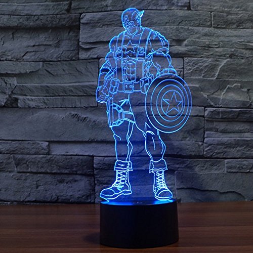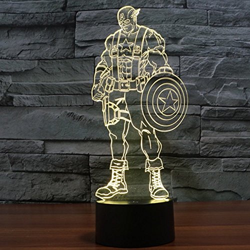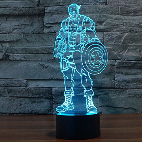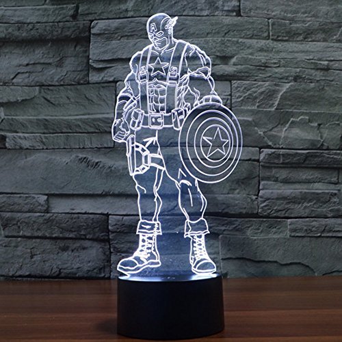 3D Illusion LED Night Light,7 Colors Gradual Changing Touch Switch USB Table Lamp for Holiday Gifts or Home Decorations(Captain America Model)