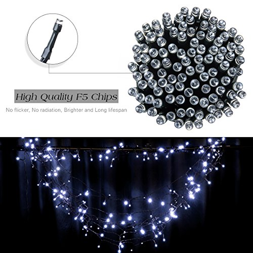 - Solar-powered LED String Lights: 200 Bright LED bulbs on 72ft high quality copper wire through a higher-efficiency and upgraded solar panel without power supply needed, With steady 360 degree viewing angle that is ideal for decorating your gardens, patio, gate, yard, wedding, party, swimming pool, holiday, christmas party, Xmas Tree etc.