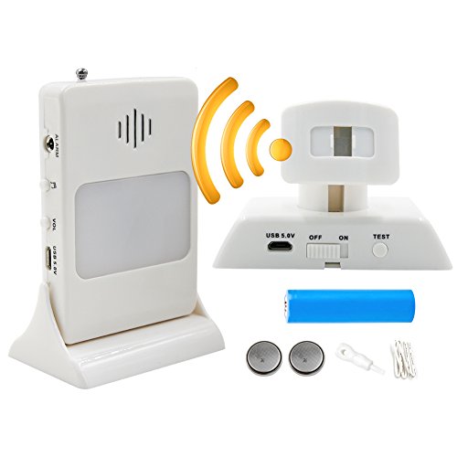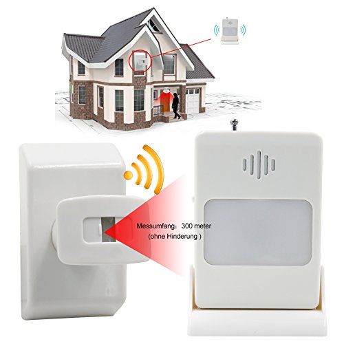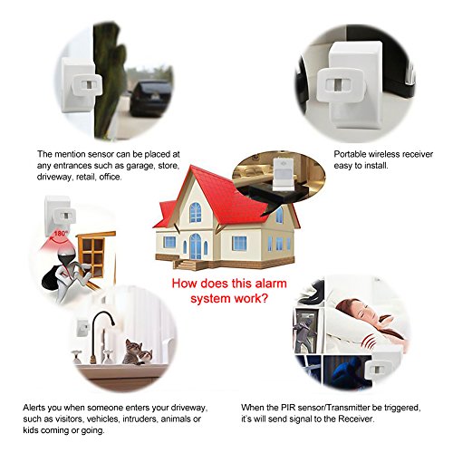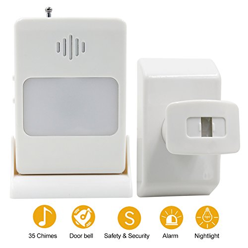 -. Feature : Patent product, long wireless range operating at 1000 feet. / 36 different ring tones with great sound quality. Three LED work mode: flash, 15 seconds light on, light on. Light on when there are people and light off when nobody around. Waterproof. / One receiver, one emitter. Strong remote signal, can easily penetrate walled barriers. / Could be used together with other alarms. / Certifications: All products passed CE, FCC, RoHS approval. One year guarantee.