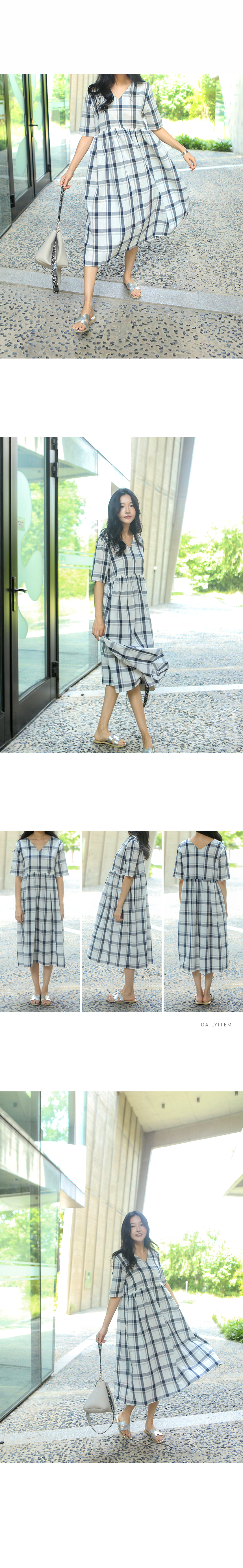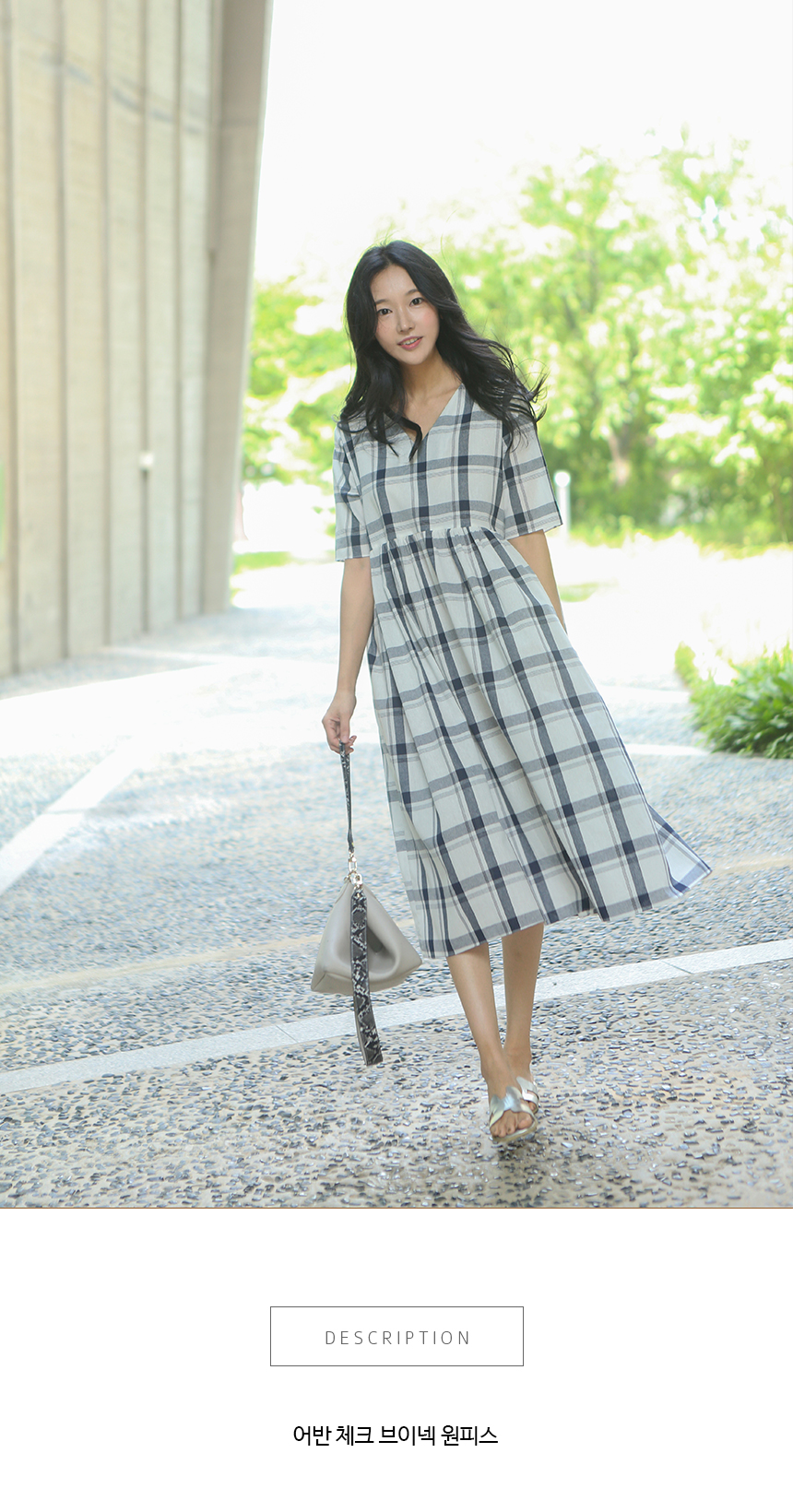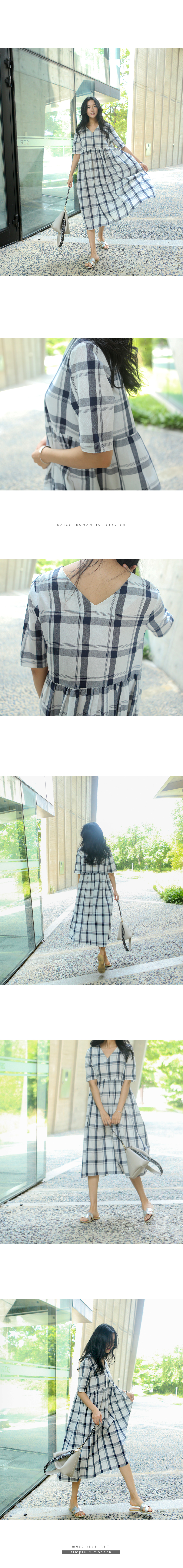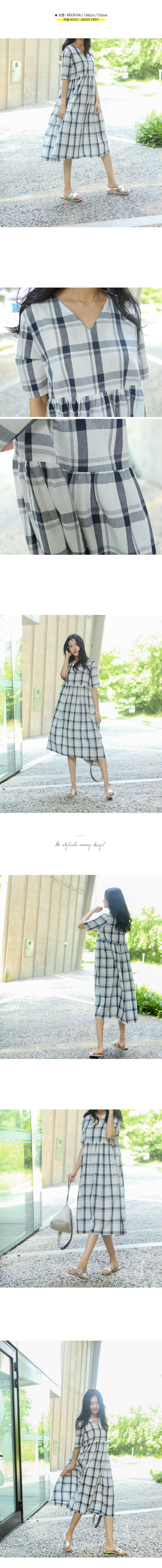 경쾌한 체크패턴과 작은 브이넥으로목선이 깔끔하고 어깨선에서 이어지는소매라인은 짧지 않아 단정해요가슴선아래에서 잔잔하게 셔링을 덧대어풍성한 플레어라인이 여유있는 핏으로상의핏이 제어깨선에 단정하게 잘 맞아편안하지만 핏이 차분하답니다쾌적한 코튼 100%의 소재감으로편안한 데일리룩으로 산뜻한 원피스에요색상은 블루, 네이비사이즈는 FREE 44~66반