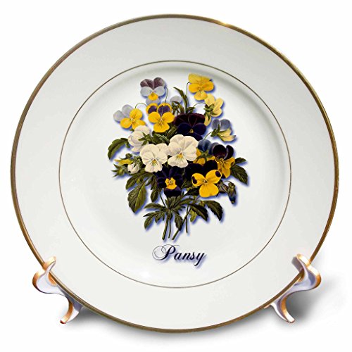3dRose cp_173068_1 Bouquet of Pretty Pansies in White, Yellow, Lavender and Purple-Porcelain Plate, 8-Inch