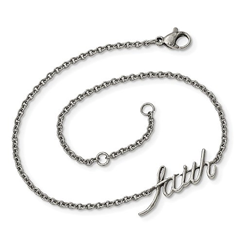 Stainless Steel Polished FAITH with 1in ext. Anklet 9" - with Secure Lobster Lock Clasp