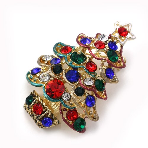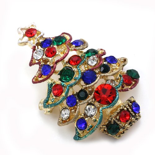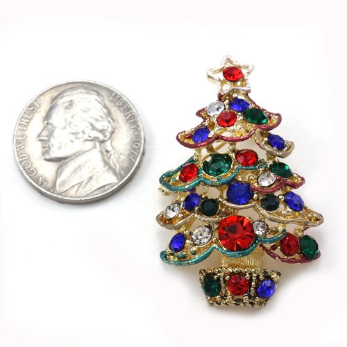SOULBREEZECOLLECTION CHRISTMAS TREE BROOCH PIN COLORFUL LIGHTS & ORNAMENTS CHRISTMAS JEWELRY
