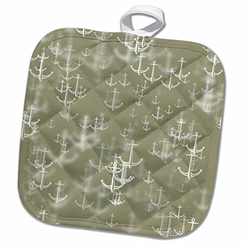3D Rose Bokeh Nautical Anchors Pot Holder, 8 x 8", Gold