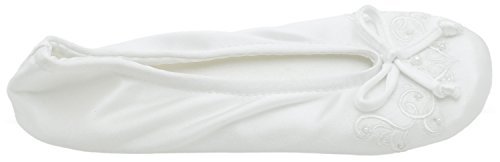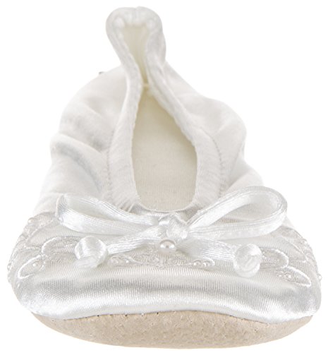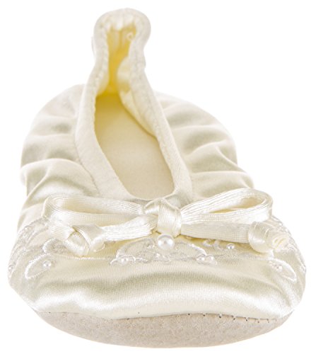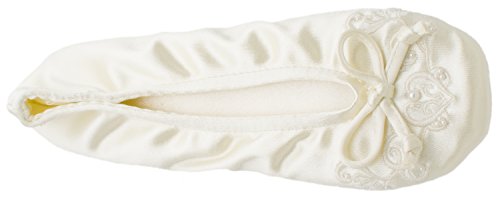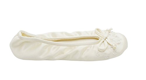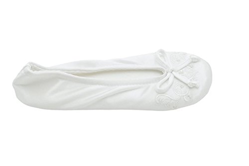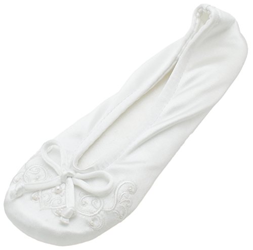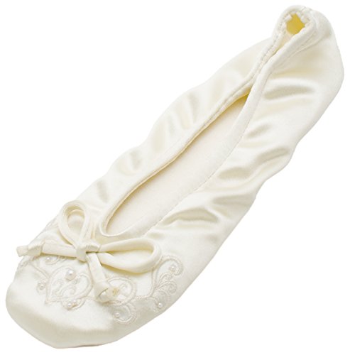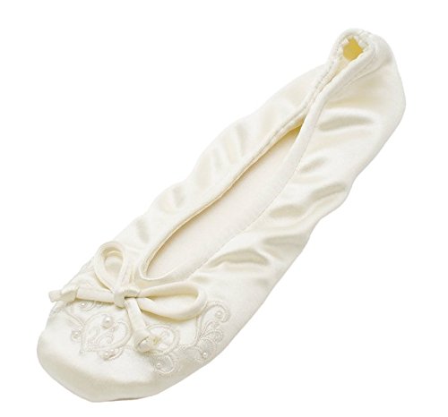 Binding : Apparel Product Description Women's Embroidered Pearl Satin Ballerina Slippers are an ISOTONER Bridal Classic. They are a perfect choice for the bride and her bridesmaids. The stretch satin upper and foam cushioned suede leather sole surround your feet in the ultimate comfort of ISOTONER's quality materials. The toe of these slippers are adorned with embroidery and pearl accents. Great for weddings travel and home. Machine wash cold water with like colors. No bleach. Dry flat away from heat. Do not tumble dry iron or dry clean. Imported. 0