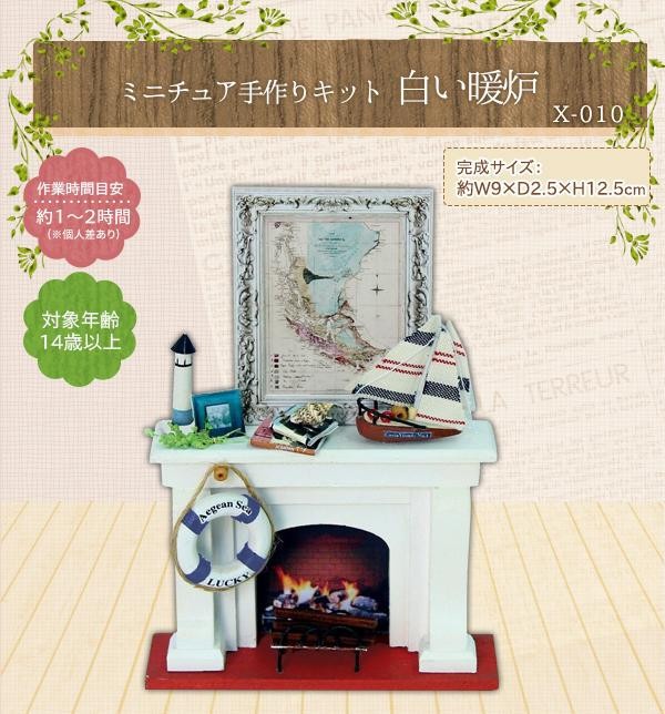 | 白い暖炉のミニチュアキットです。白い暖炉におしゃれな小物を飾って、単体でインテリアとしても、ミニチュア作品のアクセントとしてもピッタリです。分かりやすい説明書付きなので、初心者の方でも楽しく簡単に作ることができます。 |