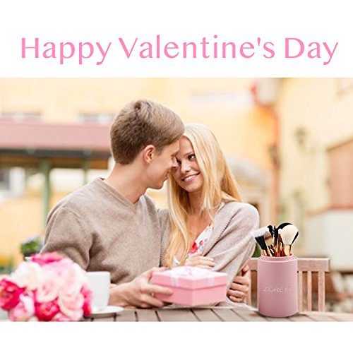 Zoreya Travel Makeup Brush Set 12pcs Pink Makeup Brushes Professional Foundation Powder Contour Blush Eye Cosmetic Brush Sets With Holder For Mother's...