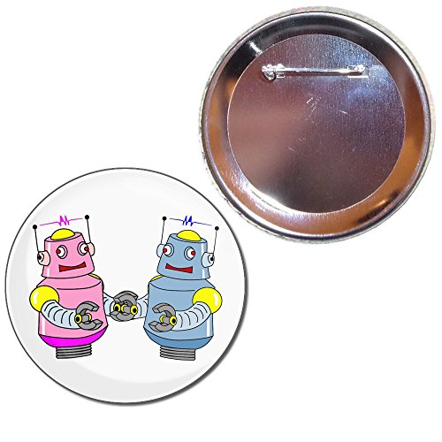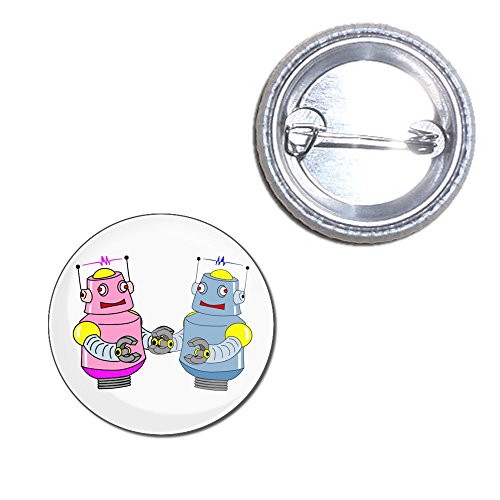 Binding : Apparel Product Description White Robot Couple button badge available in a choice of 3 sizes. Each badge is backed with a safety pin allowing easy attachement to your clothes. All our badges are printed using high quality laser printers and the design is encased behind a thin plastic protective layer. 0