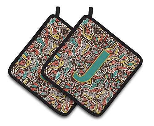 Caroline's Treasures Letter J Retro Tribal Alphabet Initial Pair of Pot Holders CJ2013-JPTHD, 7.5HX7.5W, Multicolor