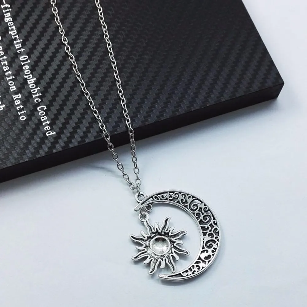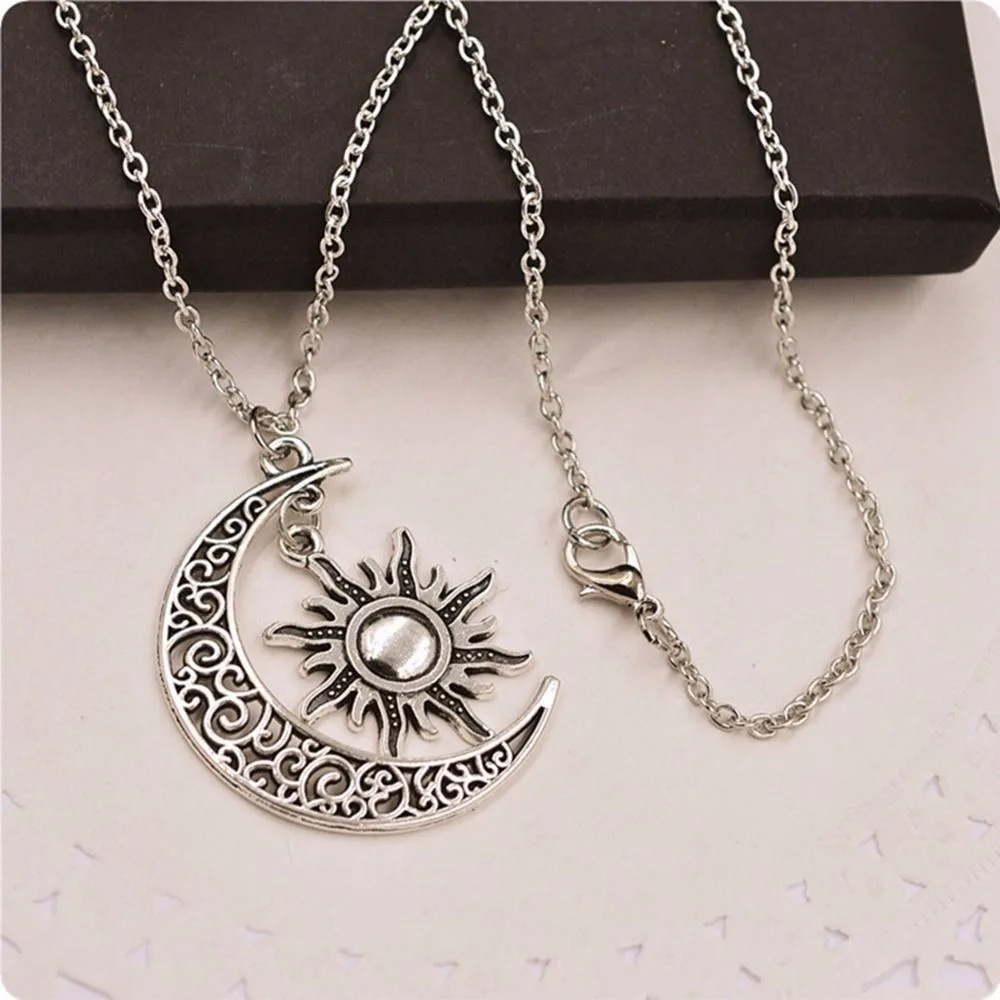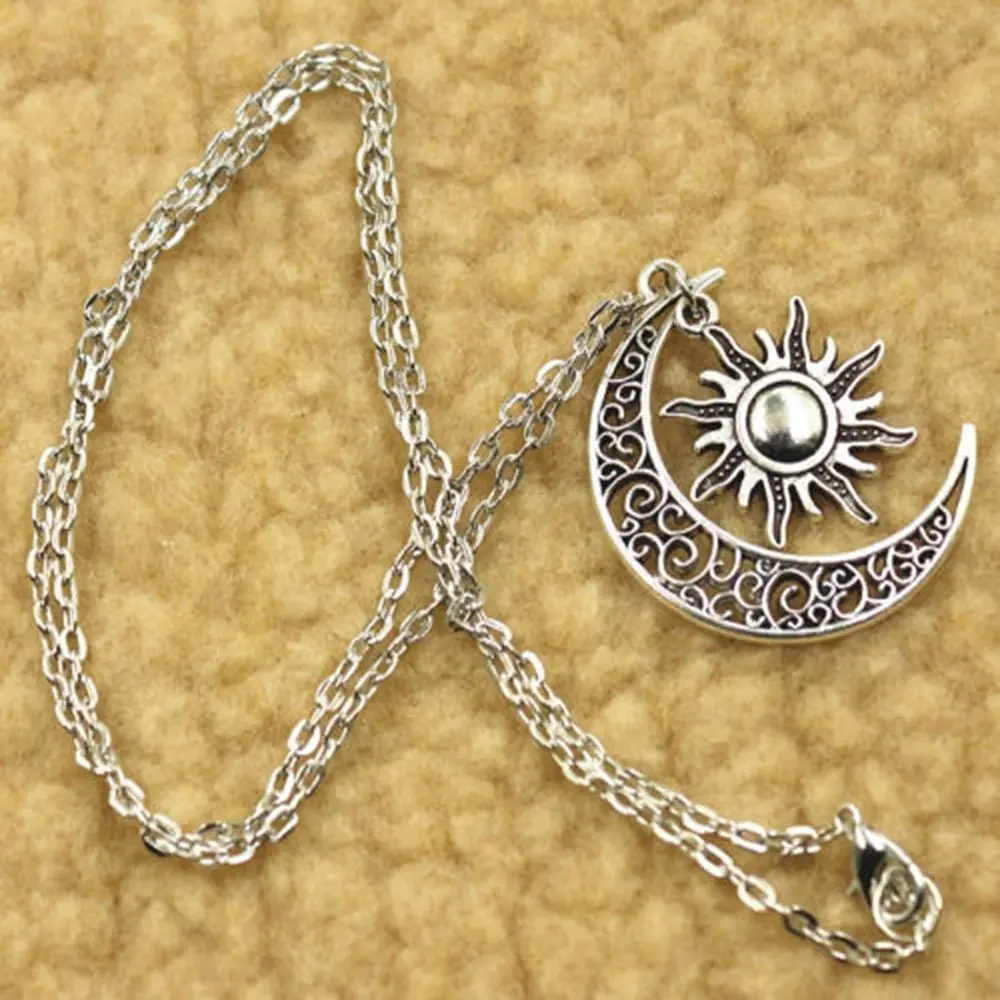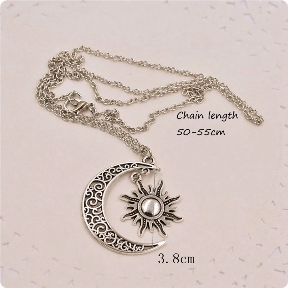 Model Number:Vintage Silver Crescent Moon Sun Charm Pendant Necklace