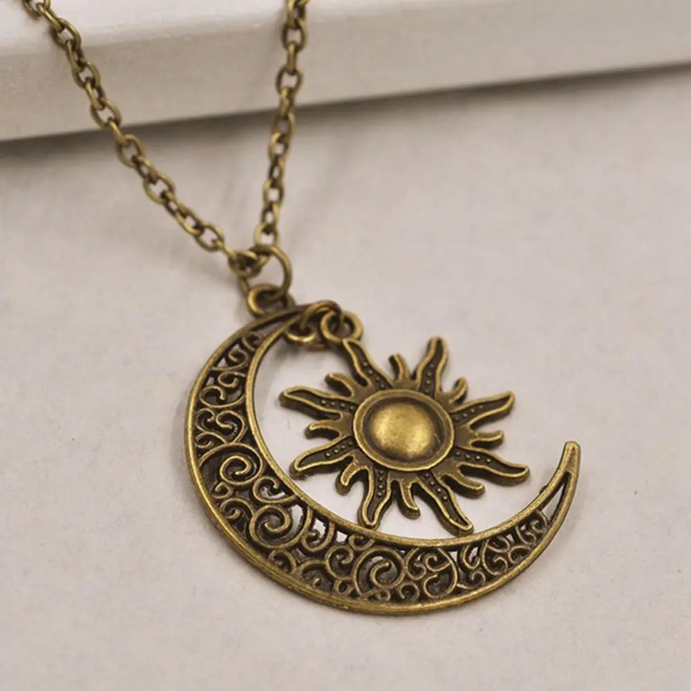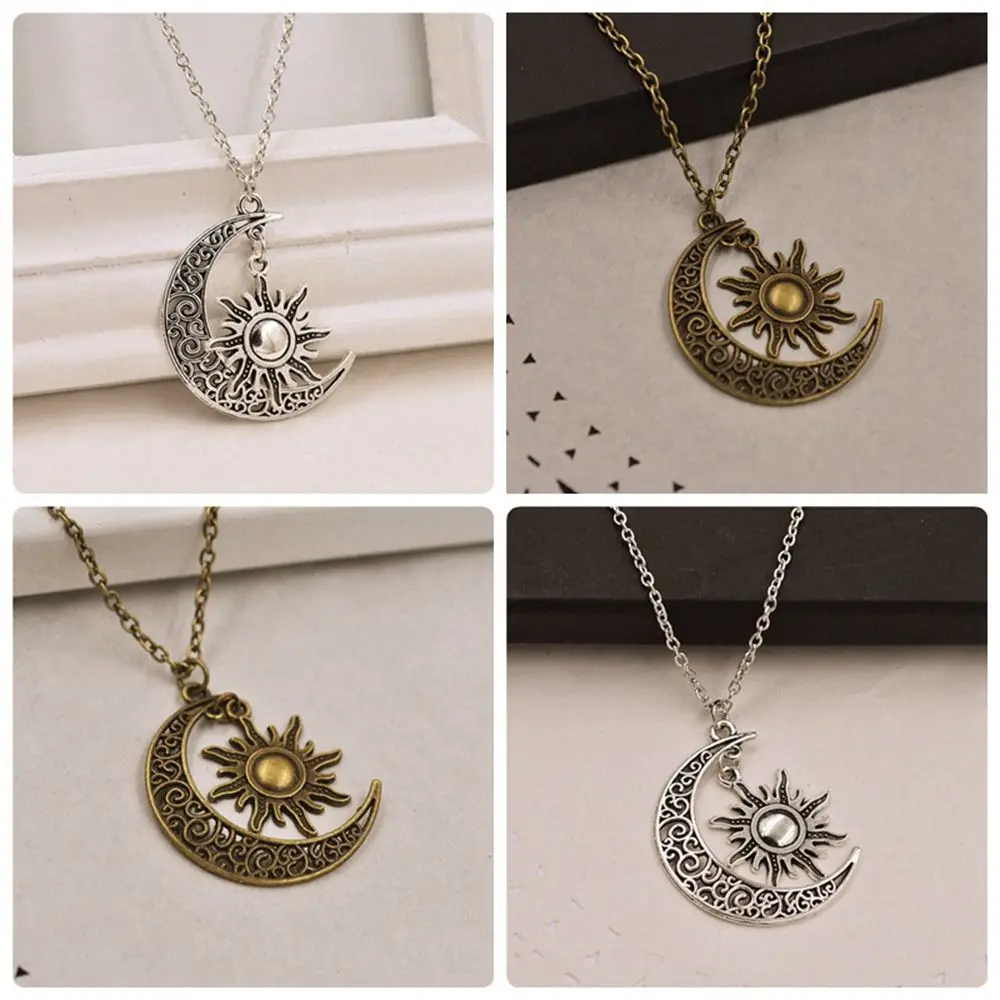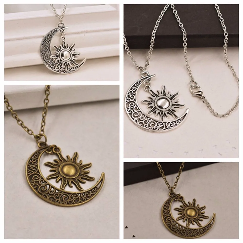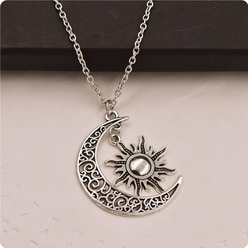 Model Number:Vintage Silver Crescent Moon Sun Charm Pendant Necklace
