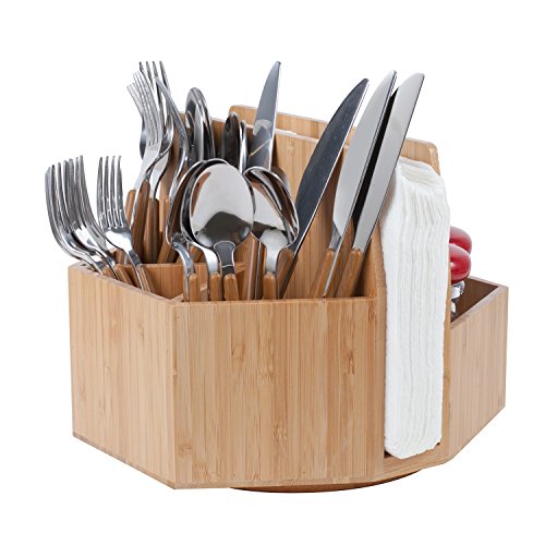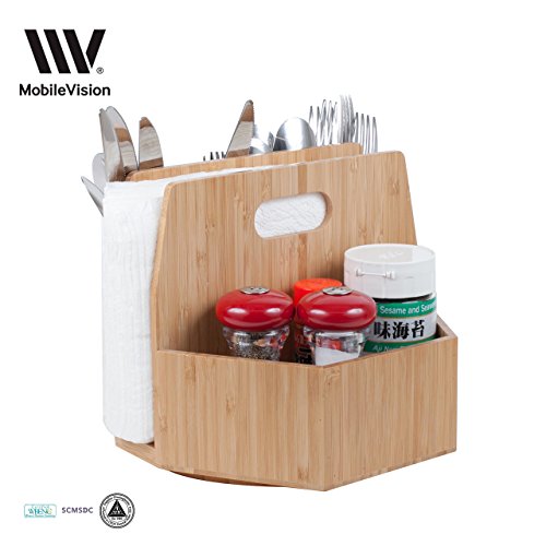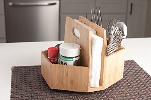 Not just for flatware utensils – this multi-purpose caddy will hold your condiments, seasonings, kitchen supplies, gadgets, and more. Can be used on the table or countertop, camping, picnics and tailgating. 5 sections hold anything from remote controls to pens and pencils, while a larger inner section is perfect for small periodicals and newspapers.