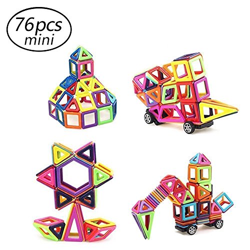 -. Title : Camande MINI Size Magnetic Building Block Set, 76 Pieces Set Magnet Kids Construction Stacking Toy Rainbow Color for Creavity Educational, with Instraction Booklet and Storage Bag, Perfect Travel Set