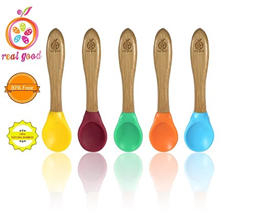 ★ THE FIRST BABY'S SPOON - While other baby spoons are too small, fall apart after few uses, and constructed with cheap toxic materials, the Real Good Baby Feeding Spoons are an all natural utensils which are specially designed with eco-friendly organic bamboo with food grade silicone tips that is soft, gum-friendly, flexible, and durable to encourage babies self feeding at first stage