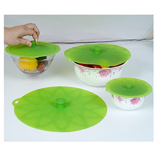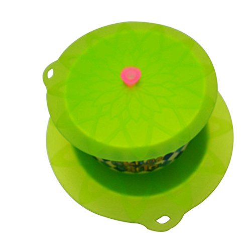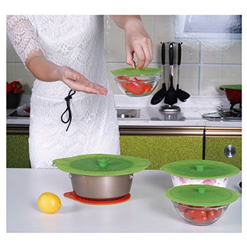 ThreeCat Set of 4 Reusable Food-grade Silicone Suction Lid and Bowls Cups Food Cover (Green)