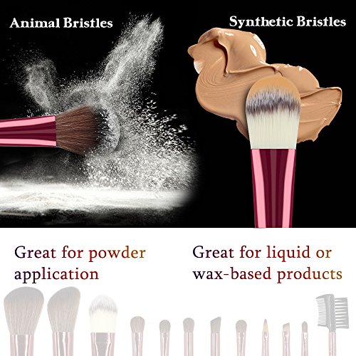 - HIGH DENSITY SOFT BRISTLES: A high quality of cosmetic brush is essential for a beautiful makeup,while the key to great makeup brushes are the bristles. The silky soft Cosmetic Brush combining both natural (pony/goat Hair) and synthetic bristles, works perfectly at blending powder, liquid and cream-based products onto the complexion.