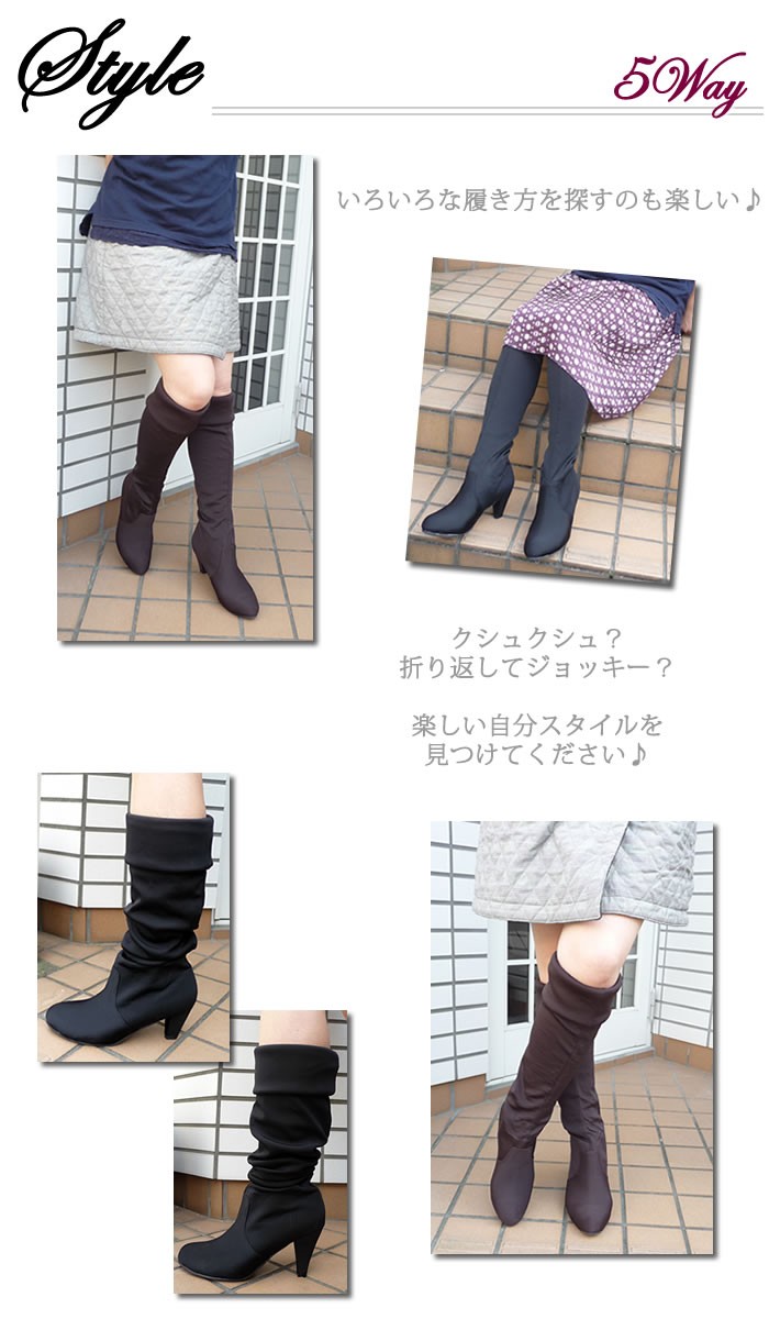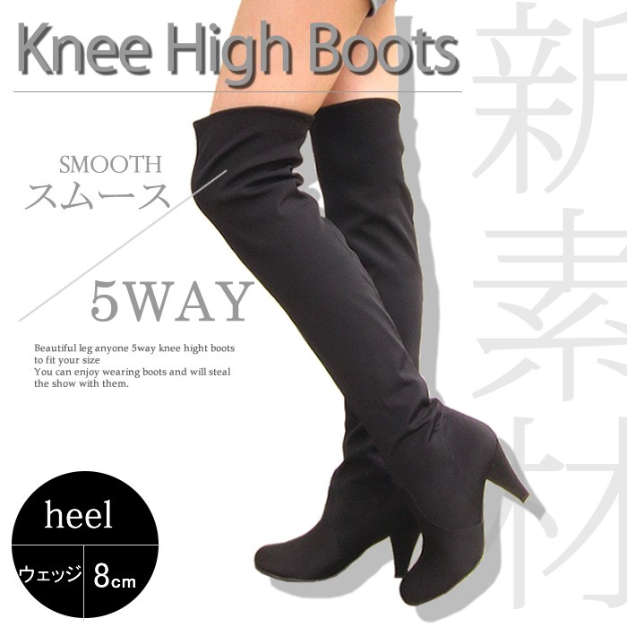 8cmヒールとウェッジヒールのストレッチニーハイブーツ♪