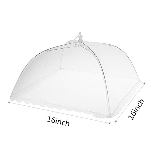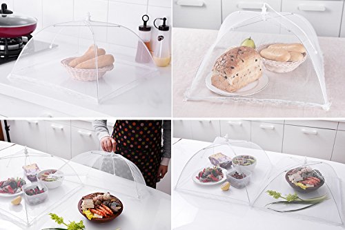 AGAINST INSECTS : Sturdy steel framework to support food cover,also against insects,mosquitoes, fruit flies, flies & bugs; mesh covers work perfect for outdoor party,picnic,family BBQ,camping or home kitchen on bowls,plates,utensils,any opened drinks,snack and fruit.