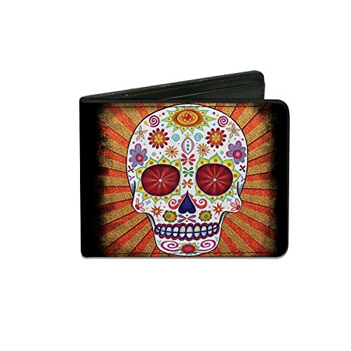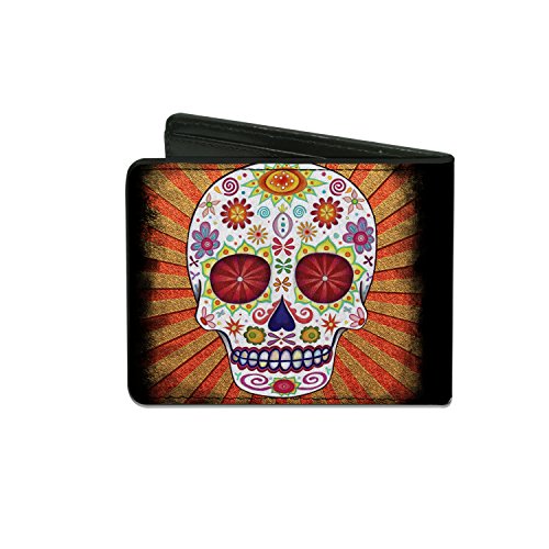 Studio : Buckle-Down Publisher : Buckle-Down Binding : Apparel Product Description This awesome men's bi-fold wallet is made from premium vegan leather. It measures 4.0x3.5x0.5 inches, and features the standard billfold, 5 card slots, and windowed id holder. The logos are applied using advanced printing technologies, so the wallet will still look good after years of hard use. This product is officially licensed by thaneeya sugar skulls and made in USA by Buckle-Down Inc. 0